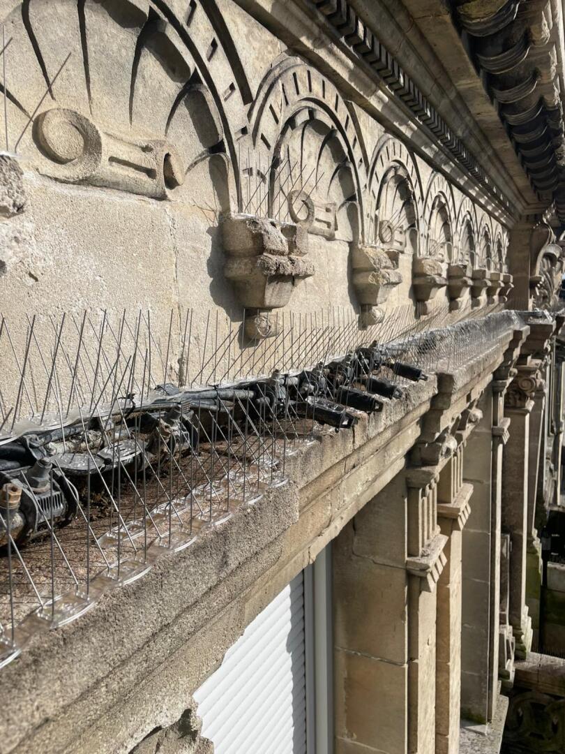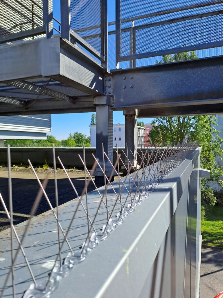 Nous installons également des pics anti pigeons, picots, pointes en acier inoxydable, piques métalliques, tiges et barrettes en inox ou alu. Ces dispositifs anti pigeons dissuadent de percher sur corniche, gouttière, rambarde ou appui de fenêtre. Esthétiques et discrets, ils résistent aux intempéries grâce à une fixation par colle silicone ou visser.